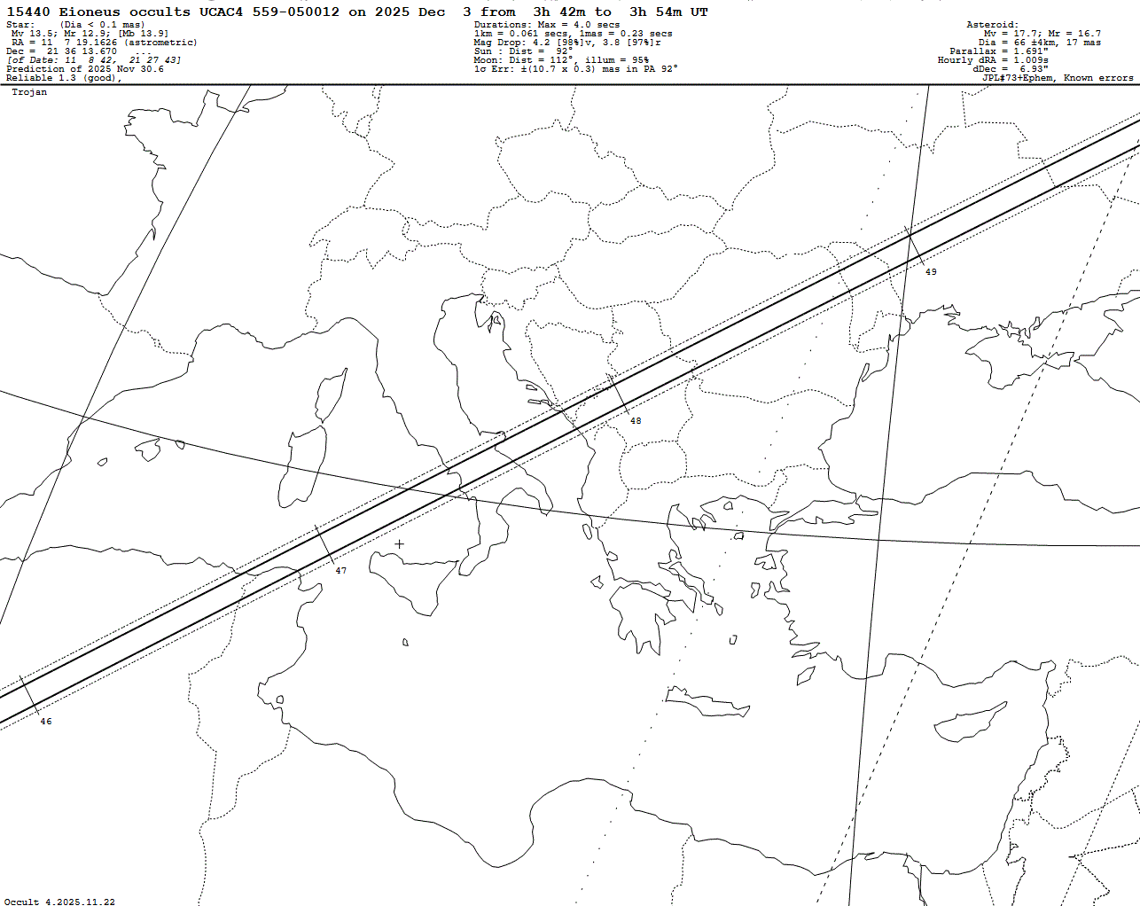 2025 Dec 03 ~03:46 UT: (15440) Eioneus occults UCAC4 559-050012 (13.5 mag)