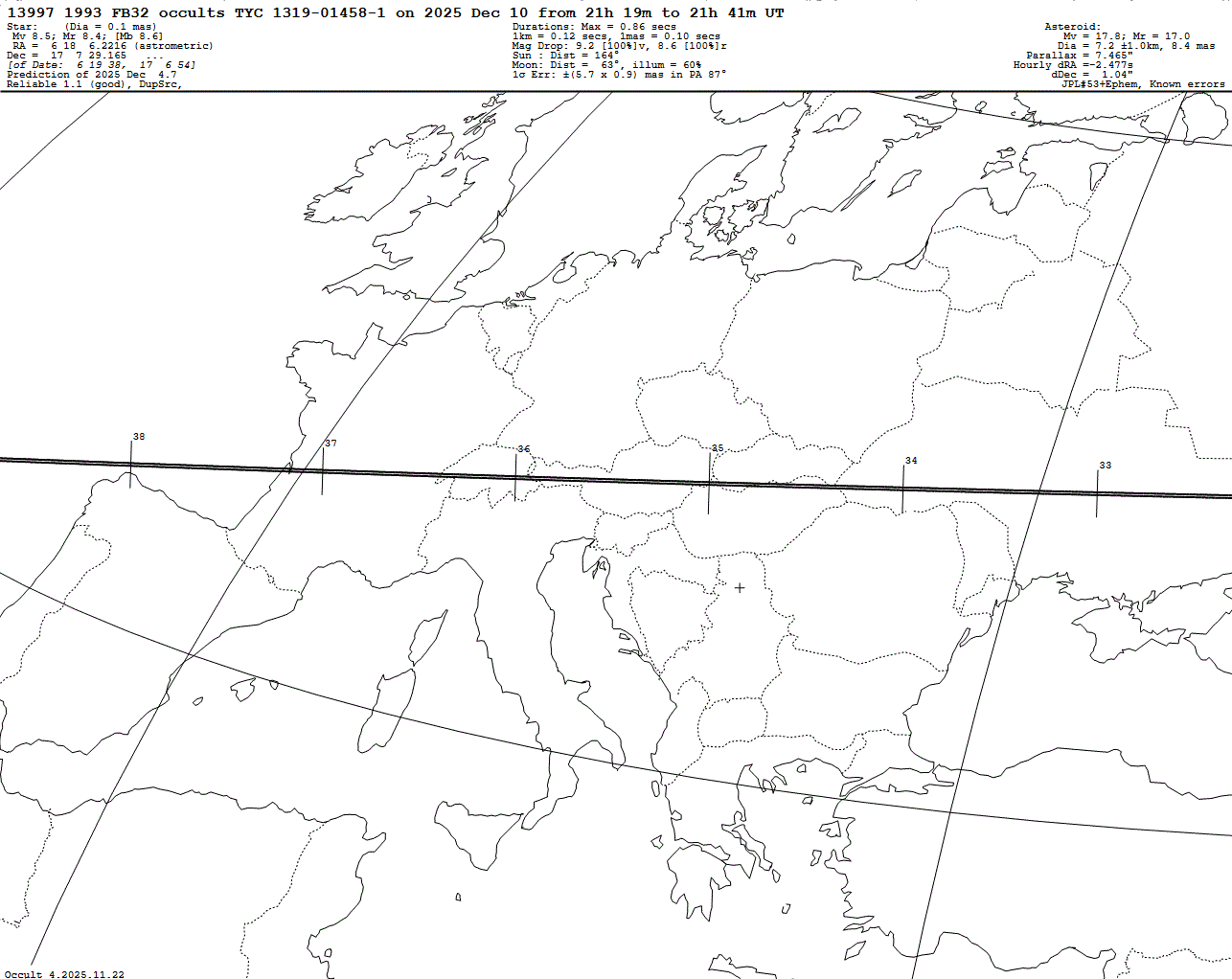 2025 Dec 10 ~21:34 UT: (13997) 1993 FB32 occults TYC 1319-01458-1 (8.5 mag)