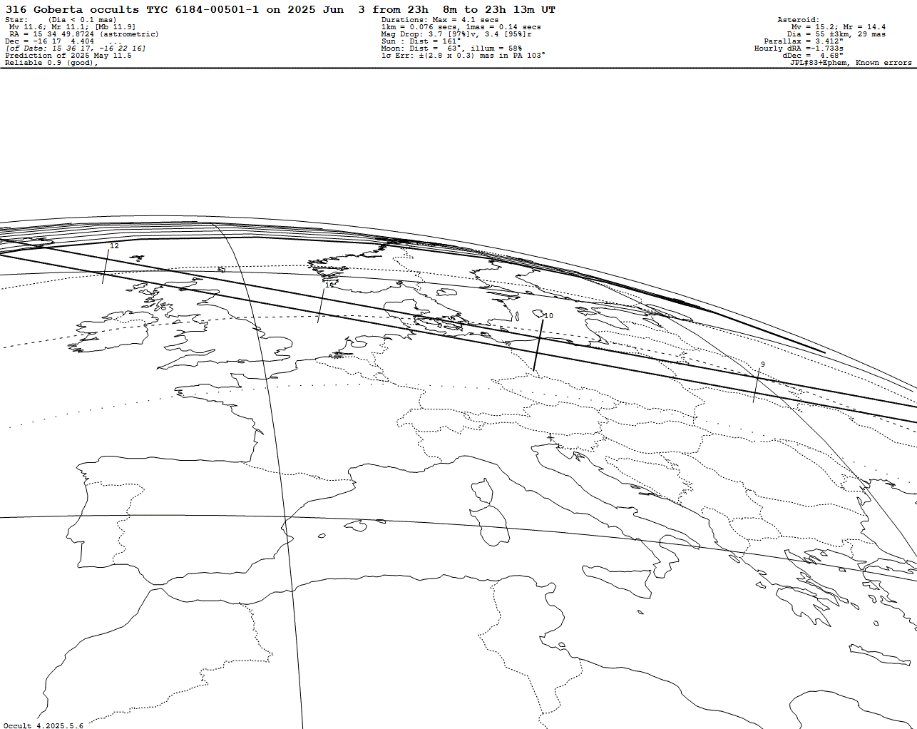 Last update: 2025 May 11, Occult Watcher Cloud: https://cloud.occultwatcher.net/event/1614-316-220608-646971-T00501-1 Post navigation 2025 Jun 01 ~21:05 UT: (93) Minerva occults UCAC4 566-043888 (15.5 mag) 2025 Jun 04 ~00:24 UT: (47211) 1999 TX290 occults J171536.91-155747.3 (10.6 mag)