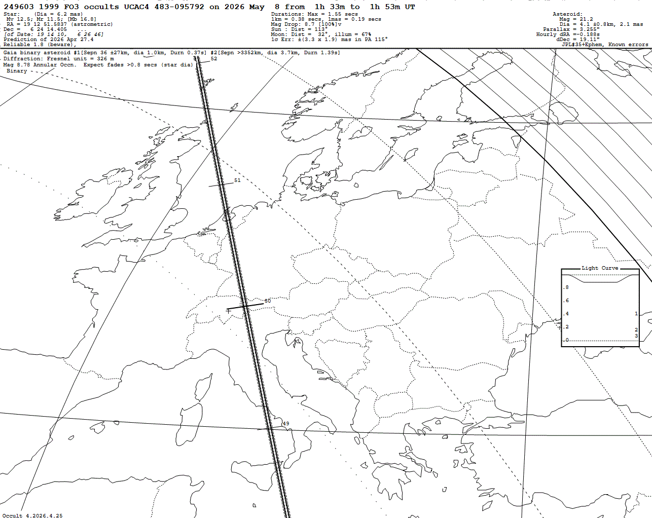 2025 May 08 ~01:48 UT: (149603) 1999 FO3 occults UCAC4 483-095792 (12.5 mag)
