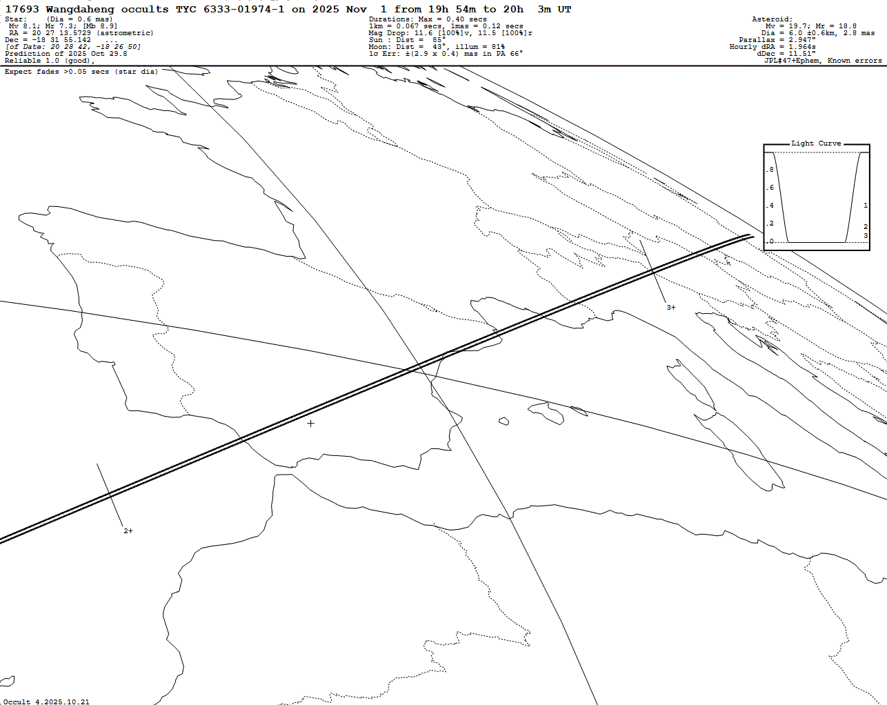 2025 Nov 01 ~20:02 UT: (17693) Wangdaheng occults TYC 6333-01974-1 (8.1 mag)
