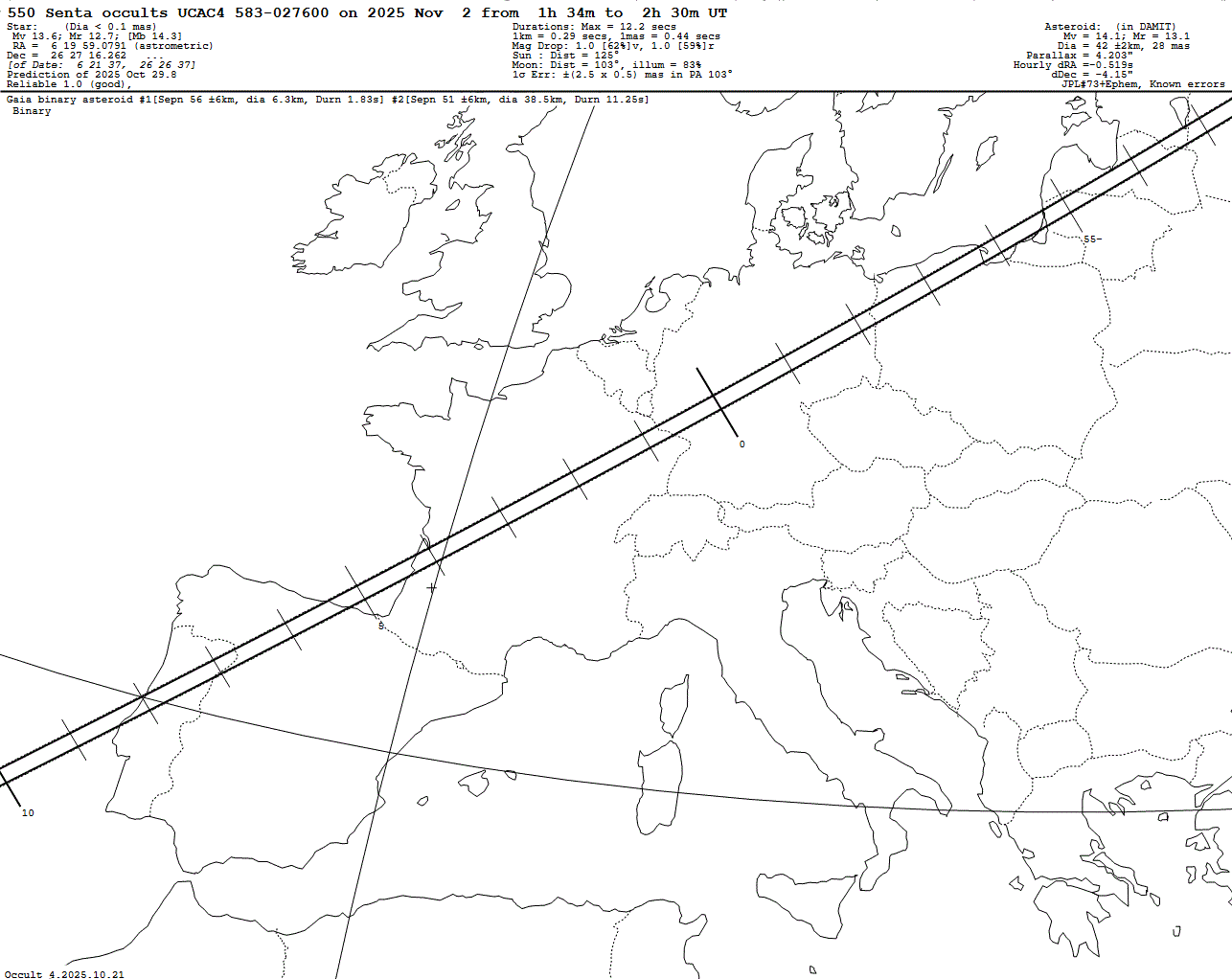 – Uncertainty in satellite position: ±60 km around the centrality.