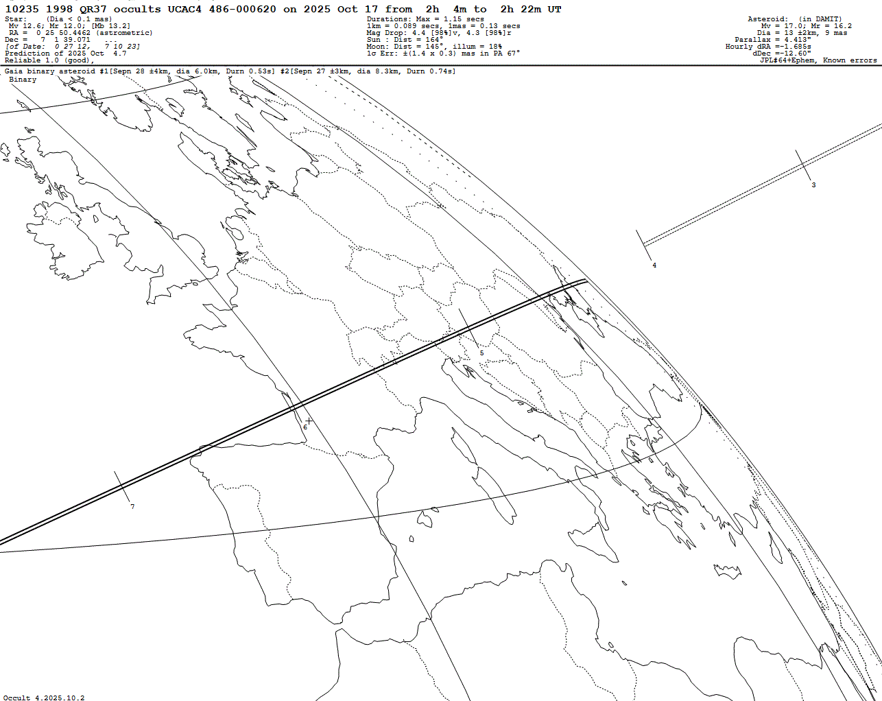 2025 Oct 17 ~02:04 UT: (10235) 1998 R37 occults UCAC4 486-000620 (12.6 mag)