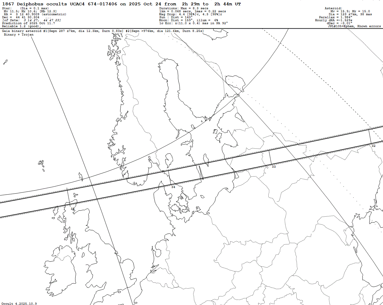 2025 Oct 24 ~02:32 UT: (1867) Deiphobus occults UCAC4 674-017406 (11.5 mag)