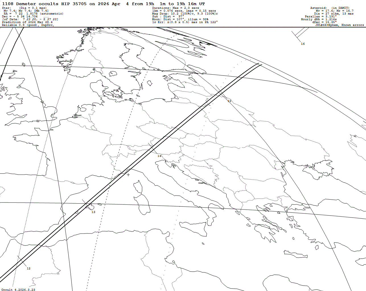 2026 Apr 04 ~19:12 UT: (1108) Demeter occults HIP 35705 (7.4 mag)