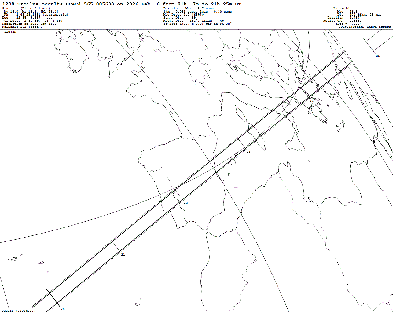 2026 Feb 06 ~21:21 UT: (1208) Troilus occults UCAC4 565-005638 (16.0 mag)