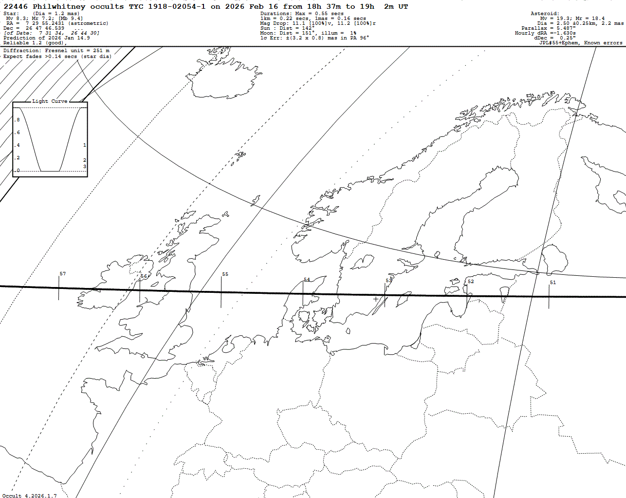2026 Feb 16 ~18:51 UT: (22446) Philwhitney occults TYC 1918-02054-1 (8.3 mag)