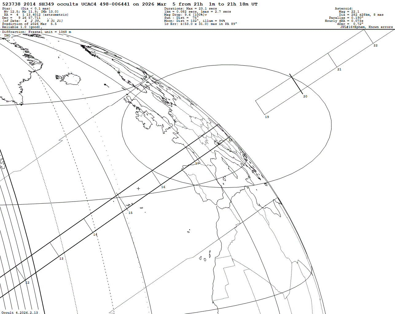 2026 Mar 05 ~21:15 UT: (523738) 2014 SH349 occults UCAC4 498-006441 (12.5 mag)